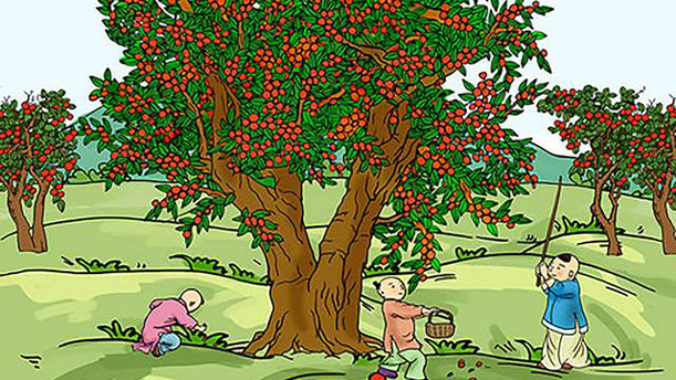 出东门,过大桥,大桥前面一树枣。拿着竿子去打
