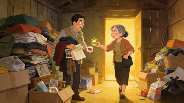 马太太说:“不用的旧物统统扔了吧。搬来搬去,塞得家里满满的,最后还不是成了废物。”