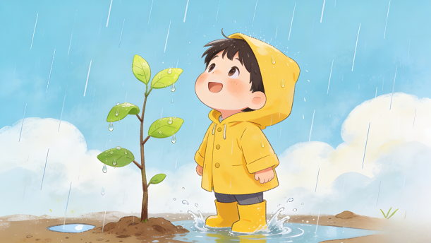 盼星星,盼月亮,终于盼到了下雨的这一天了。雨点掉下来了,它溅开了一朵朵花,就像把钻石和珍珠撒得满地都是。我透过雨水,看见了房檐上,一排排雨水不断往下落,而那些树更是挺直了腰,竖起了叶子,它们贪婪地喝着雨水。我想到长高的机会要来了,可以像爸爸一样高了,就立刻兴奋起来。我急忙冲进雨里,咬紧牙关,忍着冷,让大雨淋了整整一下午。晚上,我感冒了,但还是缠着爸爸量身高,看见身高一点也没有变,我哭了,而且声音很大,惊动了奶奶,奶奶过来了,问我怎么哭了,我生气地说:“奶奶,你骗我,我淋了一下午的雨,可还是没有长高。”奶奶笑着说:“傻小子,你还真信啦,那是我和你开玩笑呢!”全家人都开始捧腹大笑。