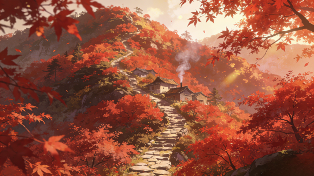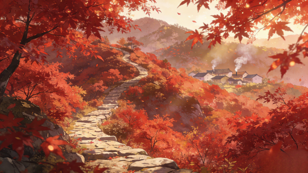 诗人巧妙地捕捉了山行途中所见的几幅景观:远望一条山石铺成的山路蜿蜒曲折,伸向高山之巅;近看山间白云缭绕,隐隐约约显现出几户人家,四周枫叶如火,更显得红艳娇美,远远胜过早春二月的花。诗人用简洁的话语表达了自己对深秋美景的喜爱之情。