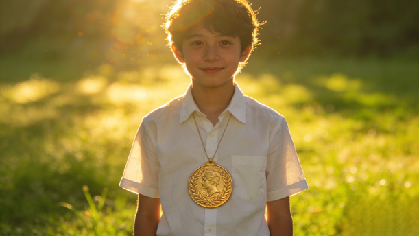 她的头歪向枕头一边,痛苦地用手抓挠胸口。床架上方,则挂着一枚我一九三二年赢得耐斯市少年乒乓球冠军的银质奖章。
