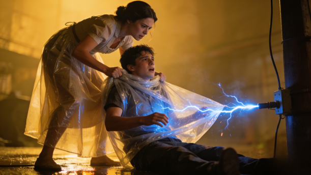 玛丽亚愣住了,她不明白男孩子们在玩什么把戏。她走近一瞧,那五个男生一动也不动,每个人的表情都是惊恐万分,好像在拼命挣扎而又难以逃脱。“你们怎么啦?”玛丽亚尖叫着,就要冲上去救他们。刹那间,她发现了男生们身边有一根刚刚被风刮断的电线。玛丽亚的心狂跳起来,她突然明白了,五个男生触电了!她急切地思索着,一遍遍问自己:我该怎么办?我该怎么办?玛丽亚虽然只是小学生,但她已经学过关于电的基本知识。她知道,如果自己贸然冲上去,会和那些男生一样触电,不但救不了伙伴们,连自己也要丧命的。她隐约想起老师讲过,橡胶、尼龙、木头等物体是绝缘体,可以避免触电。在这紧急关头,上哪儿去找那些东西?她急得双手直拍身体,忽然转忧为喜:我不是穿着尼龙裙子吗?