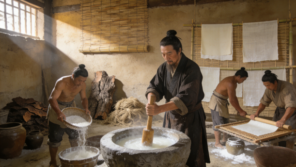 东汉时期的蔡伦是一名伴在皇帝身边的宦官,他曾经见过各种各样的书写材料,但是发现没有一种既轻巧,又容易书写,还能够大量生产的材料。于是,他总结了前人造纸的经验,改进了造纸技术。