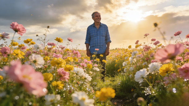 于是他留了下来。彼得花了不少精力培育花苗,不久田地里长满了美丽娇艳的各色鲜花。
