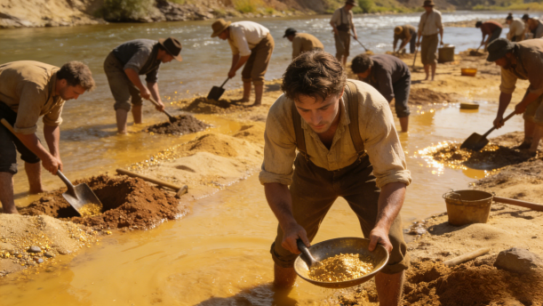 自从传言有人在萨文河畔散步时无意发现了金子后,这里便常有来自四面八方的淘金者。他们都想成为富翁,于是寻遍了整个河床,还在河床上挖出很多大坑,希望借助它们找到更多的金子。的确,有一些人找到了,但另外一些人因为一无所得而只好扫兴归去。