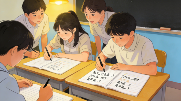 在两个句子、段落和层次中间设计设问性过渡短语,以找到下句生动贴切的叙述语气。这种设问呼应衔接提示性内在语有利于使语言表达和受众的心理相呼应。
