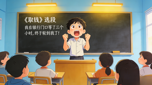 老舍先生是一位幽默大师,他的文章往往生动如口语,常常正话反说,反话正说,清新俏皮却又不失讥讽犀利。如《取钱》第一段中“我”向二哥夸耀自己在中国的银行里睡了一觉,这种行为其实是很不文明的,而老舍先生却说“中国人比外国人更伟大”,其内在语是讽刺国人不讲文明的行为。朗诵时,声音形式应该是气浮声跳。