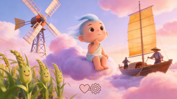 风娃娃想:帮助人们做好事,真容易,有力气就行。