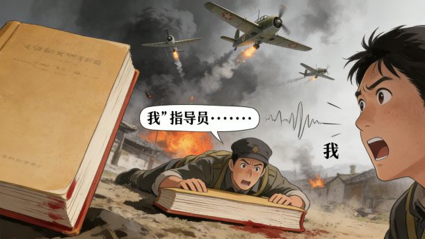 “快卧倒······”指导员刚喊出口,轰隆一声,炸弹在我们身边爆炸了。我两耳一阵轰鸣,就什么也不知道了……等我醒来,才发觉自己头部受了伤。指导员趴在离我不远的地方,一动也不动。那捆书完整无缺地压在他的身子下面,被鲜血染红了。