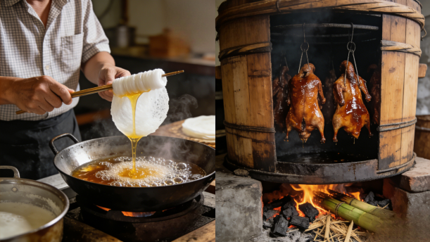 从阿植记事起,门前这个木桶散发出的甜蜜烟熏味一路伴随他长大。阿植家一直保持着最传统的熏鸭古法,这种方法已经有300年的历史,阿植从父亲那里继承了独门秘方。