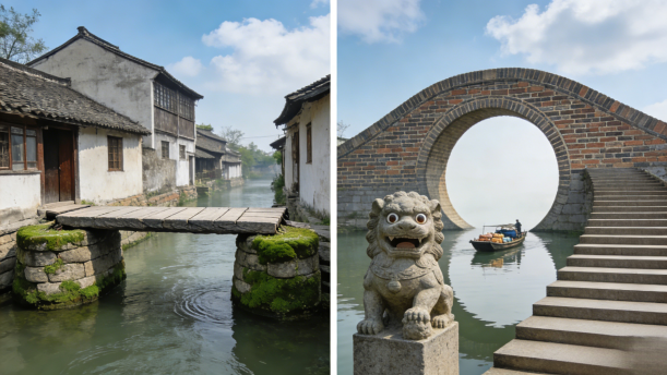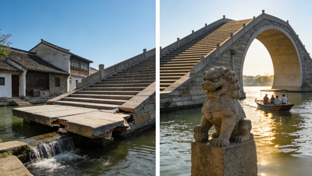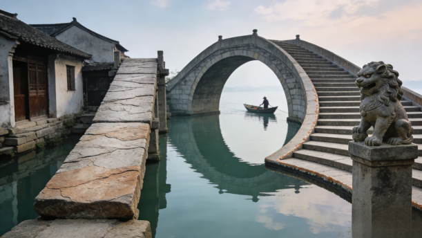 家乡小桥的名称也美极了。千岁桥、如意桥、震龙桥、元宝桥、娘娘桥、骆驼桥……大人们告诉我,元宝桥、骆驼桥是人们根据它们不同的形状叫出来的;而震龙桥、娘娘桥,就跟民间传说有关系了;至于如意桥,是从唐朝诗人王维的诗句“流水如有意,暮禽相与还”中撷取而来的。有趣的是,请石匠凿就的桥名字体也各不相同,或篆或隶,或楷或草,有的飘逸潇洒,有的刚劲雄健,跟桥相衬相映,又平添了几分情趣。记得有一年清明节我跟外婆坐船扫墓去,每过一桥,我大声地念一遍桥名,接着就听外婆讲一个关于这桥的故事。几十里水路百座桥,外婆的故事足足可装一条船!