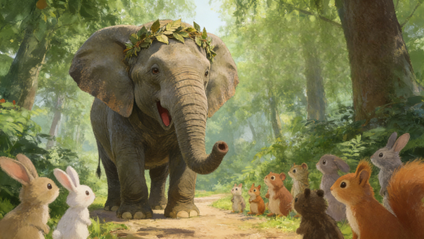 森林里要开选美大会,德高望重的大象被选作大会的主席。