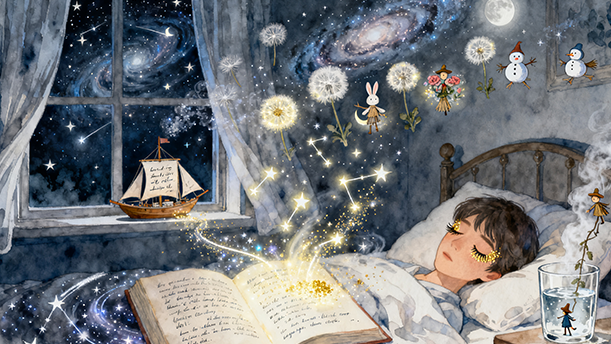 我赞美世界, 用蜜蜂的歌, 蝴蝶的舞 和花朵的诗。 月亮, 遗失在夜空中, 像是一枚卵石。 星群, 散落在黑夜里...