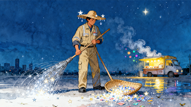 窗外流动着宝石蓝色的夜, 屋子里流进来牛乳一样白的月光, 水果店的钟声当当地敲响过了十二下, 美丽的水果们都一齐醒过来, 请夜风指挥虫儿们的乐队来伴奏, 这奇异的晚会就开了场。 第一个是香...