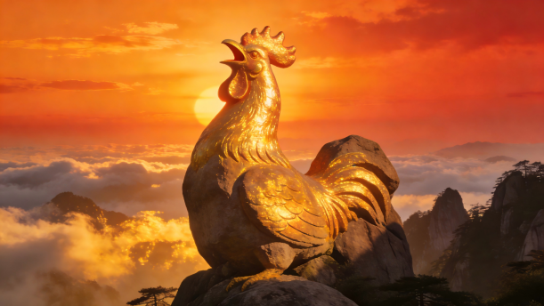 每当太阳升起,有座山峰上的几块巨石,就变成了一只金光闪闪的雄鸡。它伸着脖子,对着天都(dū)峰不住地啼叫。不用说,这就是著名的“金鸡叫天都”了。