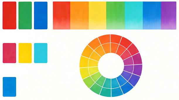 十二色相——按光谱顺序排列为:红、橙红、橙黄、黄、黄绿、绿、绿蓝、蓝绿、蓝、蓝紫、紫、红紫。
