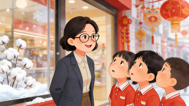 在我国台湾省,是很难看到雪的。过春节的时候,孩子们在商店的橱窗里看到了美丽的雪景。那是用洁白的棉花做成的。孩子们问老师:“您看见过真的雪吗?”老师微笑着点点头。“您是在哪儿见过的?”孩子们惊奇地问。老师说:“小时候,在我的故乡。”她顺手指了指地图上的北京。“北京离这儿很远吧?”孩子们问。老师说:“不算太远。”接着她就给孩子们讲起了童年玩雪的情景。冬天,天上飘着雪花,地上铺着雪毯,树上披着银装,到处一片洁白。小伙伴们在雪地上堆雪人、打雪仗,玩得可高兴了!孩子们争着问老师:“什么时候能带我们到北京去看看真的雪呢?”老师望望大家,深情地说:“那里的小朋友正盼着你们去和他们一起玩儿呢!”