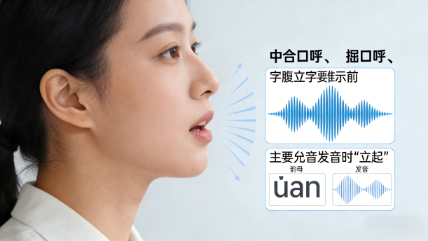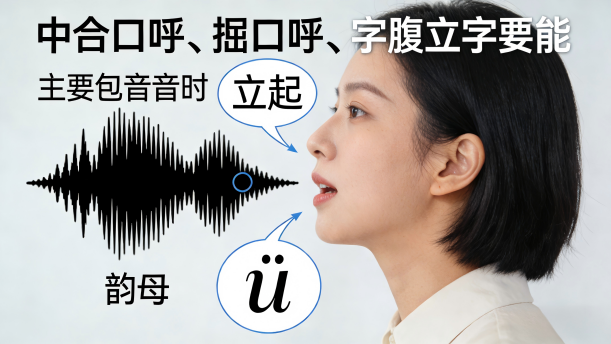 通过合口呼、撮口呼的练习,让学生体会韵腹拉开立起的感觉。做到韵腹拉开足够开度,立起足够时间,准确到位。