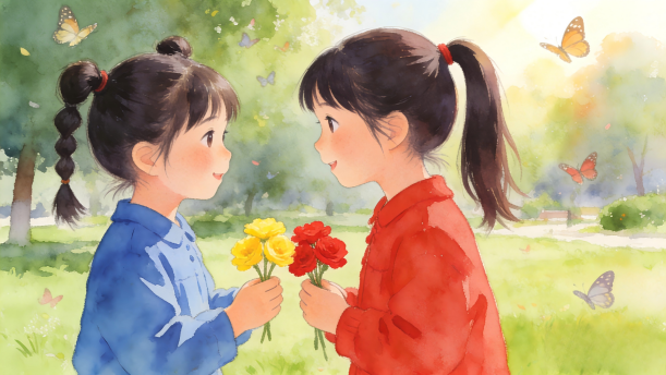 红红送给华华一朵红花。