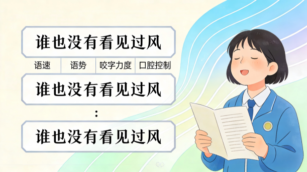 朗诵《风》这首小诗,感受“放”“松”的口腔状态,但同时保证语音、调值的准确和清晰,保证舌位在整个运动过程中的完整。