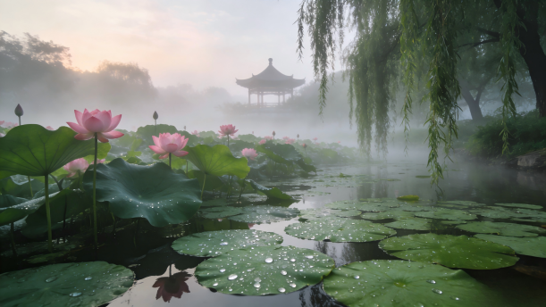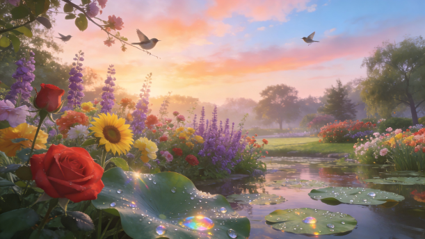 公园的早晨是美丽的。淡淡的霞光下,五颜六色的鲜花争奇斗艳,散发出沁人心脾的香味。荷叶上晶莹透亮的露珠在阳光下闪闪发光。