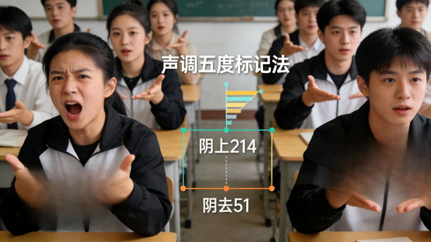 在声调练习的同时,结合口腔控制、呼吸控制、喉部控制、共鸣控制加以练习。
