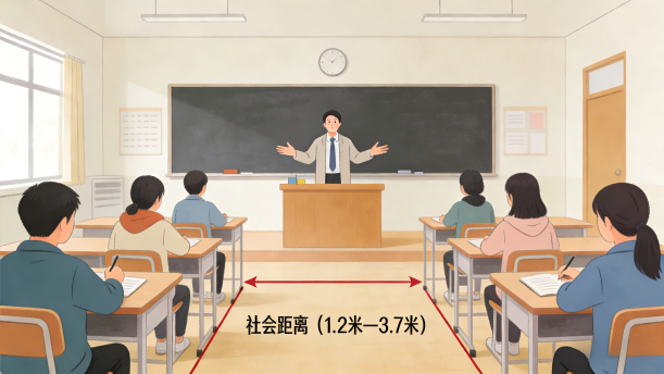 试着用以上四种距离和同学们交流、说话,感受四种距离的不同,并根据距离的远近,自觉地调整话语状态和声音高低。