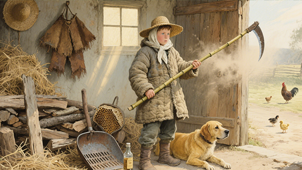 我站在一旁,心里涌出一种捅马蜂窝的强烈愿望。那多有趣!我找来妹妹,乘爷爷午睡的当儿,悄悄溜到通往后院的小门口。我脱下褂子蒙住头顶。用上衣的前襟迟盖下半张脸,只露一双眼,又把两根竹竿接绑起来,作为捣毁马蜂窝的武器。我和妹妹约定,她躲在门里,把住关口,待我捅下马蜂窝,赶紧开门放我进来,然后把门关住。