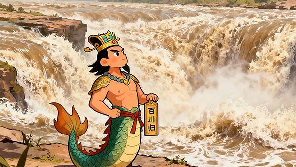 河伯原本沉浸在自我满足的幻觉之中,以为自己掌控的黄河便是世间水流的极致,却未曾料到,在浩瀚的北海面前,自己的那点水势不过是沧海一粟。