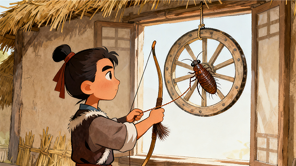 有个人名叫纪昌,慕名来拜飞卫为师。飞卫对他说:“你先要学会在任何情况下都不眨眼睛。有了这样的本领,才能谈得上学射箭。”