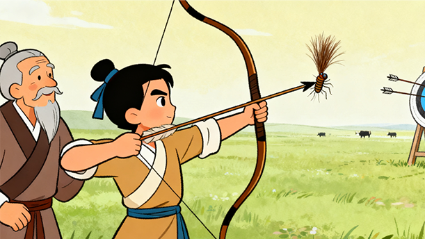从此,纪昌便成了远近闻名的神箭手。他所射出的箭,不仅精准无比,而且力道恰到好处,无论是飞翔在空中的鸟儿,还是奔跑在草原上的野兽,都难以逃脱他的箭矢。人们纷纷传颂着纪昌的箭术,将他与古代的神箭手甘蝇相提并论,甚至有人认为他的箭术已经超越了甘蝇,达到了一个新的高度。纪昌并没有因此而骄傲自满,他深知自己的箭术还有提升的空间,于是继续勤学苦练,不断追求更高的境界。