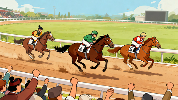 又一次赛马开始了。孙膑坐在赛马场边上,很有兴趣地看田忌与齐威王赛马。第一局,齐威王牵出自己的上马,田忌也牵出了自己的上马,结果跑下来,田忌的马稍逊一筹。第二局,齐威王牵出了中马,田忌也以自己的中马与之相对。第二局跑完,田忌的中马也慢了几步而落后。第三局,两边都以下马参赛,田忌的下马又未能跑赢齐威王的马。