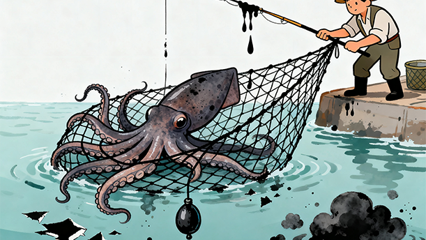 被抓到的墨鱼后悔不已,它怎么也没想到,自己引以为傲的护身法宝,这次非但没帮上忙,反而暴露了自己的行踪。它拼命挣扎,想要挣脱渔网,可一切都是徒劳。老渔人看着网里乱动的墨鱼,笑着对儿子说:“这墨鱼啊,就是太自作聪明了,以为放点墨汁就能藏住自己,哪知道这墨迹反而成了它的‘追踪器’。”墨鱼听着老渔人的话,心里又羞又恼,可也无可奈何,只能暗暗责怪自己不该那么得意忘形,要是当初不那么沾沾自喜,或许就不会落得这样的下场了。