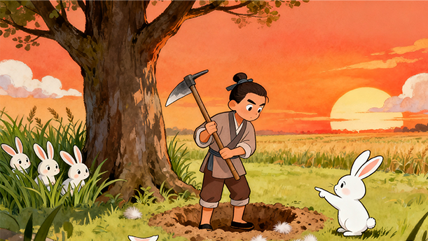 后来,农夫每天就这样守在树桩边,希望能再捡到兔子,然而他始终没有再得到。而农夫地里的野草却越长越高,把他的庄稼都淹没了。农夫因此成了宋国人的笑柄。