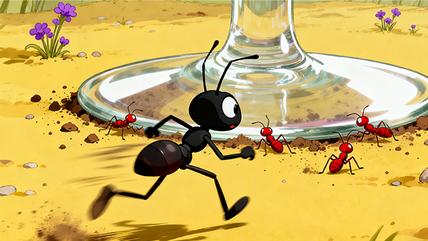 这时,一只年长的蚂蚁缓缓站了出来,它用触角轻轻碰了碰那只惊魂未定的蚂蚁,语重心长地说:“孩子,我们所处的世界远比你想象的要广阔得多,也复杂得多。每一次的冒险,都是对我们勇气和智慧的考验,但更重要的是,我们要学会分辨真实的危险与一时的困境。”