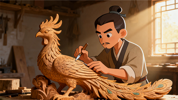 鲁班是古代著名的能工巧匠。有一次,他精心刻制一只凤凰。