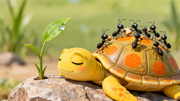 红蚂蚁的话刚说完,其他的蚂蚁纷纷摇头表示不赞同。一只年长的蚂蚁语重心长地说:“红蚂蚁啊,你只看到了表面的相似,却忽略了本质的差异。海龟顶的是蓬莱山,那可是传说中仙人居住的地方,其重量和意义岂是米粒能比的?我们在土堆上爬行,与海龟在海面上遨游,这其中的艰难和挑战,也是天壤之别。”