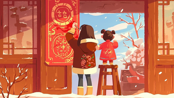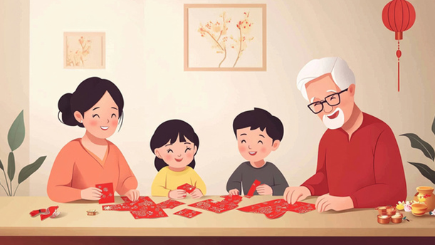 “小剪刀,手中拿,我学奶奶剪窗花”开篇直白自然,迅速代入情境。“剪梅花,剪雪花,剪对喜鹊叫喳喳;剪只鸡,剪只鸭,剪只鲤鱼摇尾巴”通过重复的句式和丰富的意象,展现出窗花内容的多样与生动,“叫喳喳”“摇尾巴”等细节描写,让静态的窗花仿佛有了动态的生命力,充满童趣。 同时,儿歌巧妙融入了民间剪纸艺术的元素,梅花、雪花、喜鹊、鸡鸭、鲤鱼等都是传统剪纸中寓意吉祥的形象,既传递了民俗文化,又让孩子在趣味阅读中感受民间艺术的魅力。