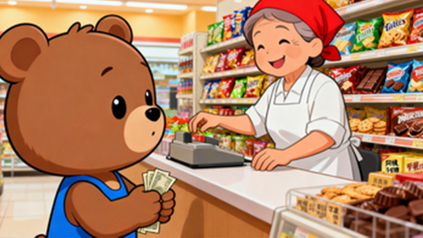 妈妈又给了小熊一些钱,对他说:“这回可别忘记了!”小熊点点头:“妈妈放心吧!