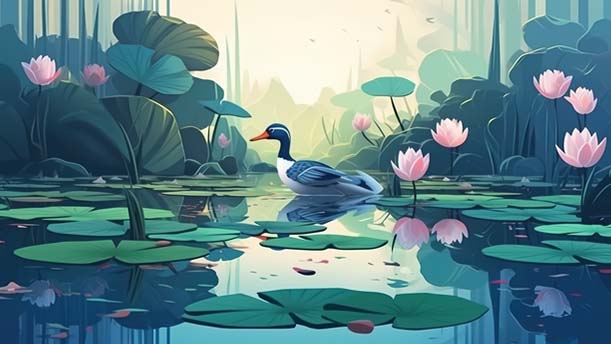 朗诵提示:在生活中,小朋友们一是要互相帮助;二是不能冒险,特别是不能自己到河里游泳。理解了这些,小鸭子急迫的语气就容易把握了。