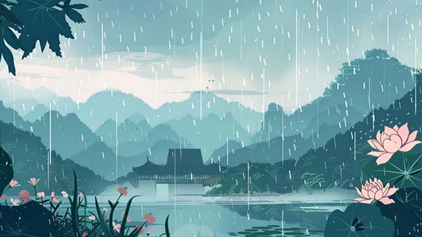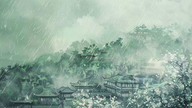 雨在瓦楞上唱歌,于是燕子在房梁上筑起了窝;