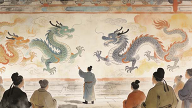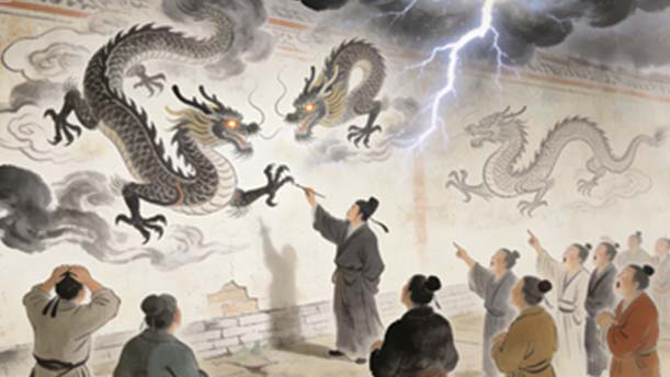 大家听后谁都不相信,认为他这样解释很荒唐,墙上的龙怎么会飞走呢?日子长了很多人都以为他是在说谎。