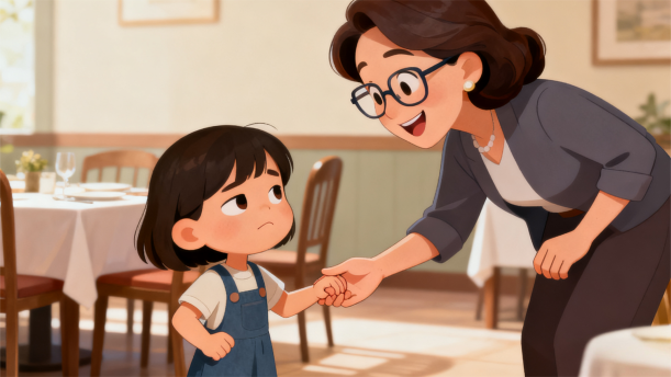 在朗读前,先深呼吸,让自己的心情放松下来,带着满满的喜爱去开启这段朗读之旅。当开始读“小妞妞,爱害羞”时,脸上要洋溢着温柔的笑意,眼神里满是宠溺,仿佛那个可爱的小女孩就在眼前。读到“见生人,不敢瞅”时,微微低下头,眼神躲闪,就像真的看到了生人害羞起来。“左一躲,右一扭”这一句,身体随着节奏欢快地左右摆动,仿佛自己就是那个俏皮的小妞妞。读“客人问话不开口”时,轻轻抿起嘴唇,做出一副羞涩不说话的模样。“客人要和她拉手”时,眼睛睁得大大的,双手不自觉地握紧,表现出小紧张的感觉。“哎哟哟”要大声又夸张地喊出来,同时双手摊开,凸显出小女孩的娇憨。最后读“她藏妈妈身背后”时,脚步慢慢往后退,身体微微弯曲,做出躲在妈妈身后的动作,声音也变得轻柔缓慢,仿佛真的看到了小女孩躲在妈妈身后,小脸红红、怯生生的可爱模样,让听众也能深切感受到这份纯真与美好。