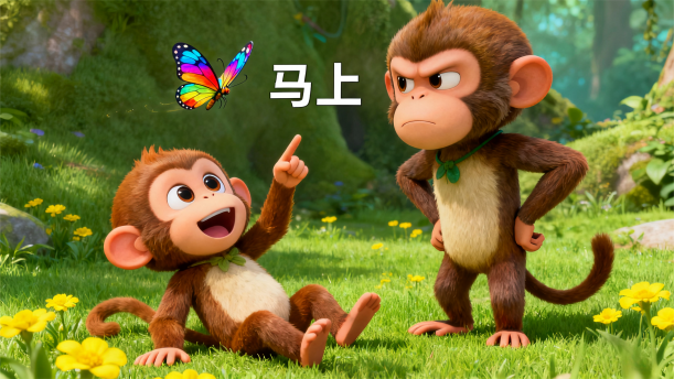 “马上”是小猴的口头禅 (chán),时间一长,大家都 叫他“马上”小猴。