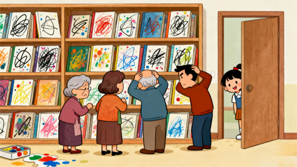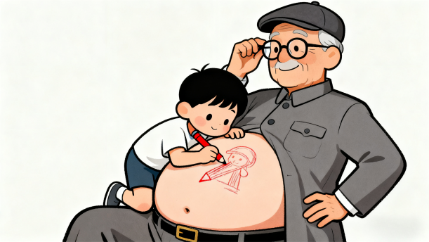 一会儿又跳到另一页,给爷爷画个圆滚滚将军肚,仿佛爷爷立马能威风凛凛去带兵。转个身,他又盯上小猫那页,唰唰几下给小猫戴上时尚太阳镜,小猫瞬间变得酷劲十足;再瞅瞅小狗那页,三两笔就给小狗套上潮流牛仔裤,小狗好似要跟着去参加时尚派对。就这么一本接一本,本本书上都留下他这调皮“杰作”,让人看了真是又好气又好笑,越看越糊涂哟。