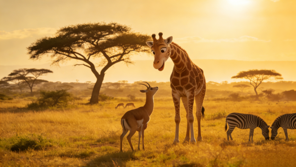 年轻的羚羊羞愧难当,它这才知道,长颈鹿是它们最好的伙伴和瞭望哨。如果不是它及时发现危险并发出警报,后果不堪设想。它真诚地向长颈鹿道歉。