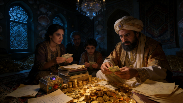 为了生活,穷鞋匠整日辛辛苦苦,忙碌不停,好不容易用汗水挣来一些钱,仅够全家勉强糊口。虽然每日粗茶淡饭,但每当晚饭后,鞋匠一家人就围坐在一起,不断地赞颂着真主的恩慈,愉快地歌唱欢乐。而那位富翁,却日日夜夜忙于算账点钱,总是挖空心思,考虑如何赚大钱,发洋财。至于唱歌、娱乐,他就根本无暇过问了。