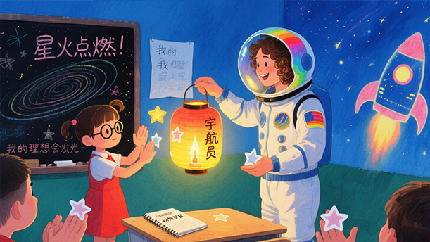 妈妈偏着头笑了一笑:“宝贝,那你可别玩忘了,到时候要早点从月球上回家来睡觉啊!”