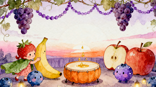 《水果们的晚会》这首小诗既有故事情节,又有幽默的情境,更有对光明的憧憬。全诗的整体基调是欢快愉悦的。