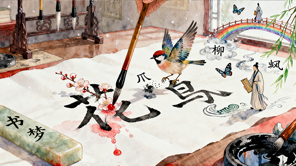 诗歌第1小节是老师用粉笔写下的汉字。“叽叽吱吱钻出来的时候”,体会形象的动作感,可以想象为一群小音符争着向外挤,“四平八稳横平竖直”语速较慢。第2小节是同学们写下的汉字,他们爱上汉字并且爱上由汉字体现出的祖国文化。“越来越大得无尽头”要有扩大延伸感。“身前身后”要有一种大幕开启的感觉,介绍汉字的历史。诗歌第3小节,想象自己就站在青铜器前,在观赏,在赞叹。第4小节注意“狂草”“龙飞凤舞”“行云流水”的对比。